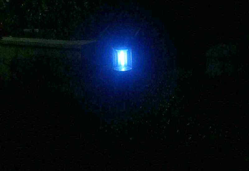 上圖:青島小區太陽(yáng)能滅蚊燈晚上亮燈工作效果