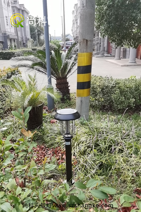 黑色太陽(yáng)能滅蚊燈放在草坪中也是很協(xié)調的